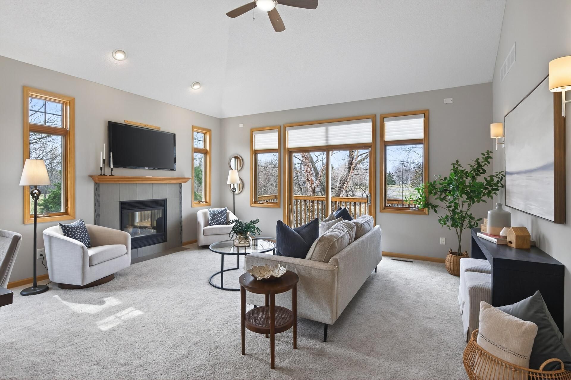 Welcome to this immaculately maintained luxury townhome in the wonderful Summer Creek neighborhood of Plymouth. Located on a cul-de-sac and backing up to a serene wetland with beautiful mature trees, this property offers a rare blend of privacy and natural beauty, with daily sightings of eagles, birds, deer, rabbits, mallards, and even turkeys. Enjoy the ease of association-maintained living while experiencing the space and comfort of a townhome that lives like a single-family home. Inside, you'll find an open layout filled with natural light, enhanced by numerous windows and a vaulted ceiling in the living room. A cozy gas fireplace anchors the space, while autumn maple trim, cabinetry, and paneled doors add warmth and style throughout. The smartly designed main level offers true one-level living, featuring a spacious primary suite with a huge walk-in closet (double shelving!), a private ensuite bath with double vanity, jetted tub, and separate shower. The laundry room is conveniently accessible from both the primary closet and hallway?making laundry day so easy. The kitchen is anything but basic with granite countertops, tile backsplash, center island, walk-in pantry, and newer Samsung black stainless steel appliances. In addition to the formal dining area, a second eat-in dining space provides flexibility for casual meals. A sliding glass door off the kitchen leads to the charming front patio, while the back deck offers peaceful views of the natural surroundings. Upstairs, a versatile loft space is accompanied by two spacious bedrooms and a full bathroom. The finished walkout lower level expands your living space with a large family room, a private office with French doors, a finished storage room with tall safe, a fourth bedroom with walk-in closet, and an additional bathroom?perfect for guests or multigenerational living. Additional features include interior fire sprinklers, a finished 2-car garage with epoxy-coated flooring and storage, and three distinct outdoor living spaces including a front patio, back deck, and lower-level patio. Located in vibrant Plymouth, known for its parks, trails, recreational opportunities, and plentiful shopping and dining, this home truly offers the best of comfort, quality living, and natural surroundings.