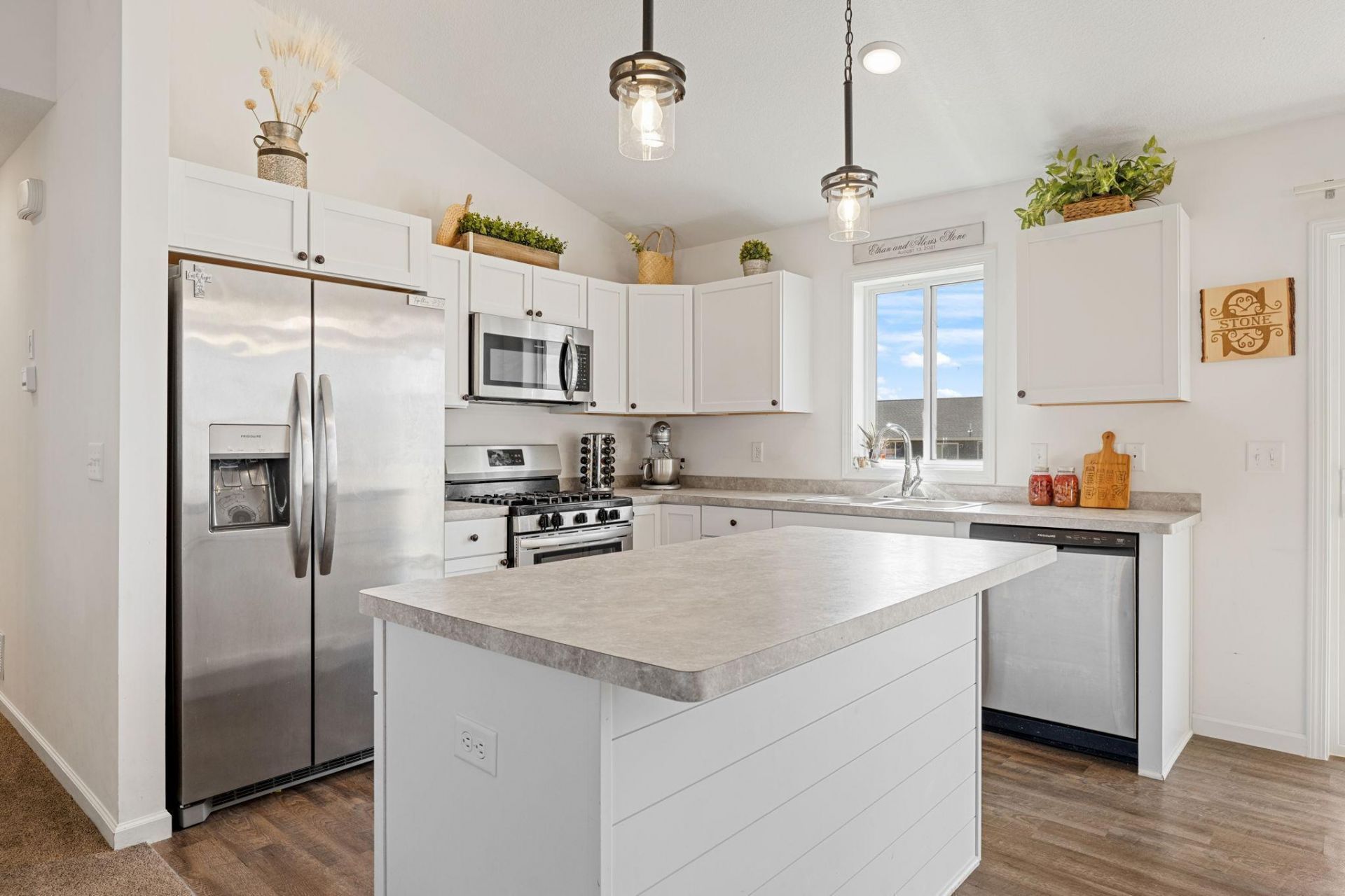 Welcome home to this beautifully updated and move-in ready gem in Isanti! This thoughtfully designed home features 3 bedrooms on the main level, including a private primary suite complete with a walk-in closet and 3/4 bath, plus an additional full bathroom for convenience.The open-concept main level is filled with natural light and highlighted by vaulted ceilings, creating a bright and airy feel throughout. The kitchen is both stylish and functional, featuring white cabinetry, black hardware, stainless steel appliances, a large center island, and an eat-in dining space?perfect for everyday living and entertaining.The sellers have fully finished the lower level, adding incredible additional living space with two more bedrooms, a 3/4 bath, and a spacious family room complete with a wet bar, ideal for hosting or relaxing. The wet bar includes hot and cold water along with ample storage for small appliances, making it as practical as it is inviting. Thoughtful upgrades enhance comfort and functionality, including a ceiling cavity filled with R-19 batt insulation and finished with two layers of 5/8 drywall for optimal soundproofing between levels. The lower level living room is also equipped with low voltage wiring for Ethernet and modem/router setup, with Ethernet runs to both basement bedrooms, perfect for work, streaming, or gaming. Step outside to enjoy the walkout lower level patio and expansive backyard. Additional highlights include a fully sheet rocked and insulated 3-car garage, modern finishes throughout, and fresh, neutral paint that complements any style.